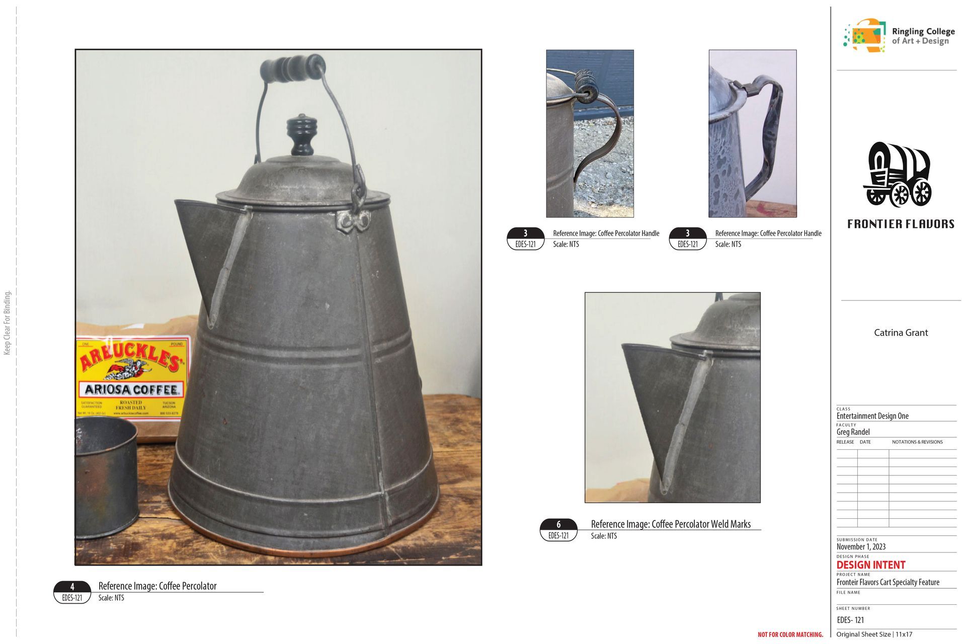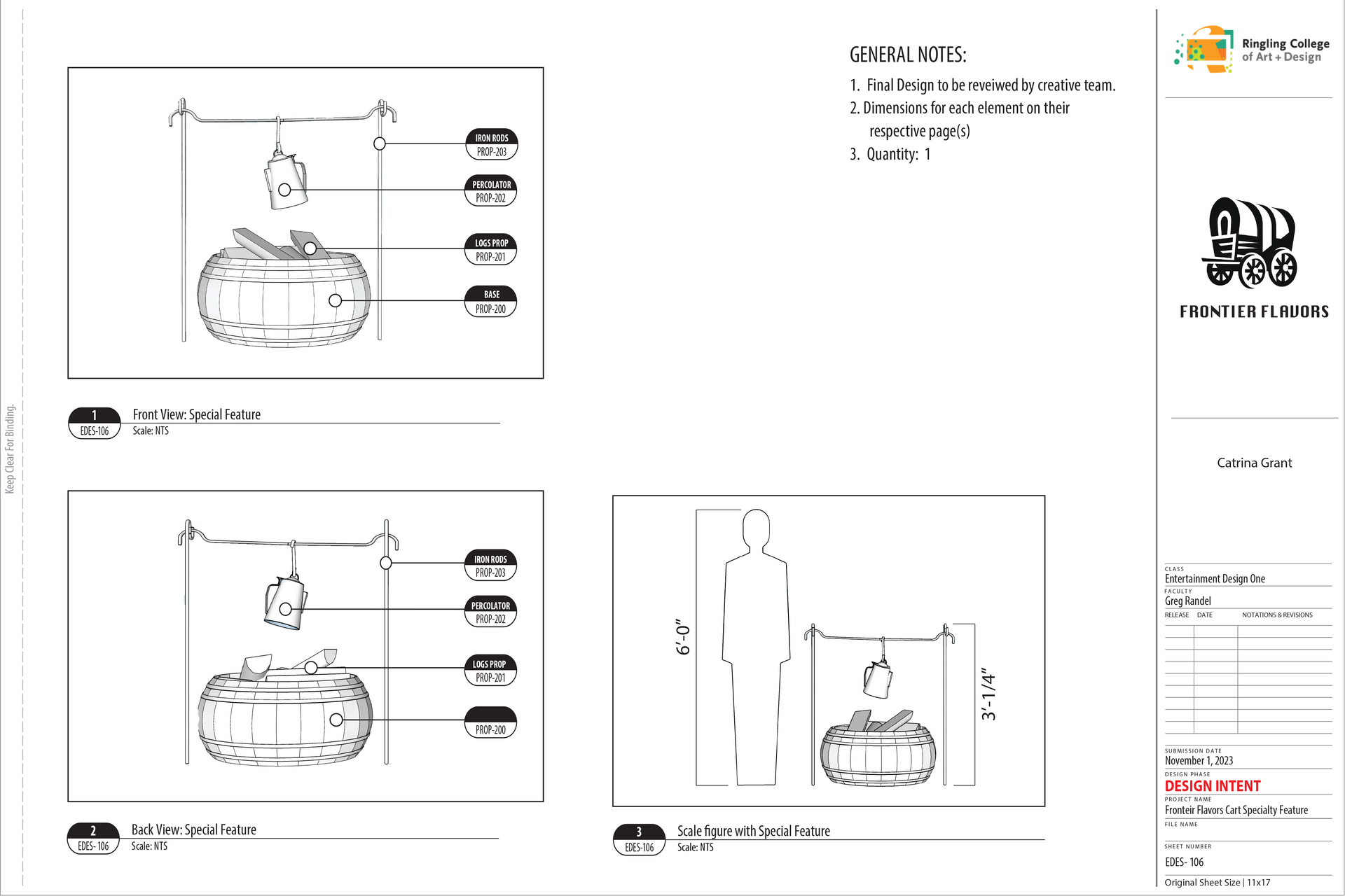 At Step up to our rustic cart that exudes the essence of the Wild West with its weathered wood, aged metal accents, and warm earthy colors. As you approach, you'll notice hand-painted signs in bold, vintage-inspired typography proudly announcing "Frontier Flavors." with addition information about times and menu items .