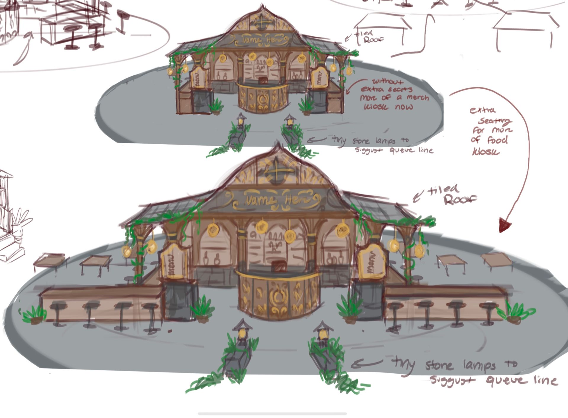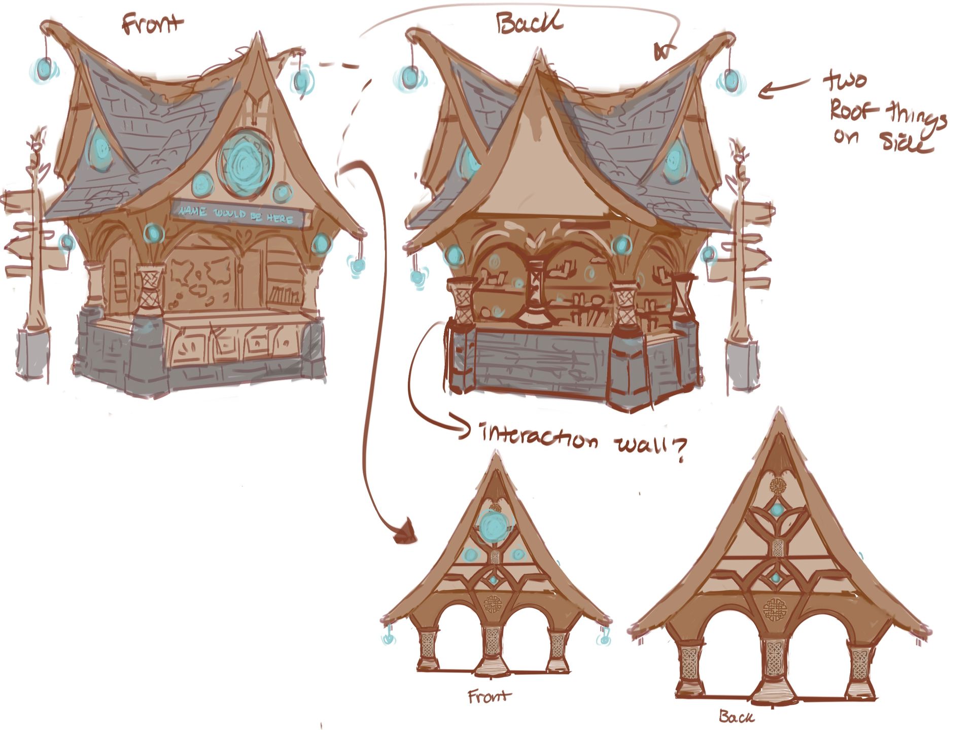 - Main concept: make an information kiosk focused on maps, wayfinding and guiding guests; could put a fun spin on the will o’ the wisp folklore. Either the spirits are still mischievous and the kiosk is harnessing their power for good or the kiosk can showcase the lesser known kindness